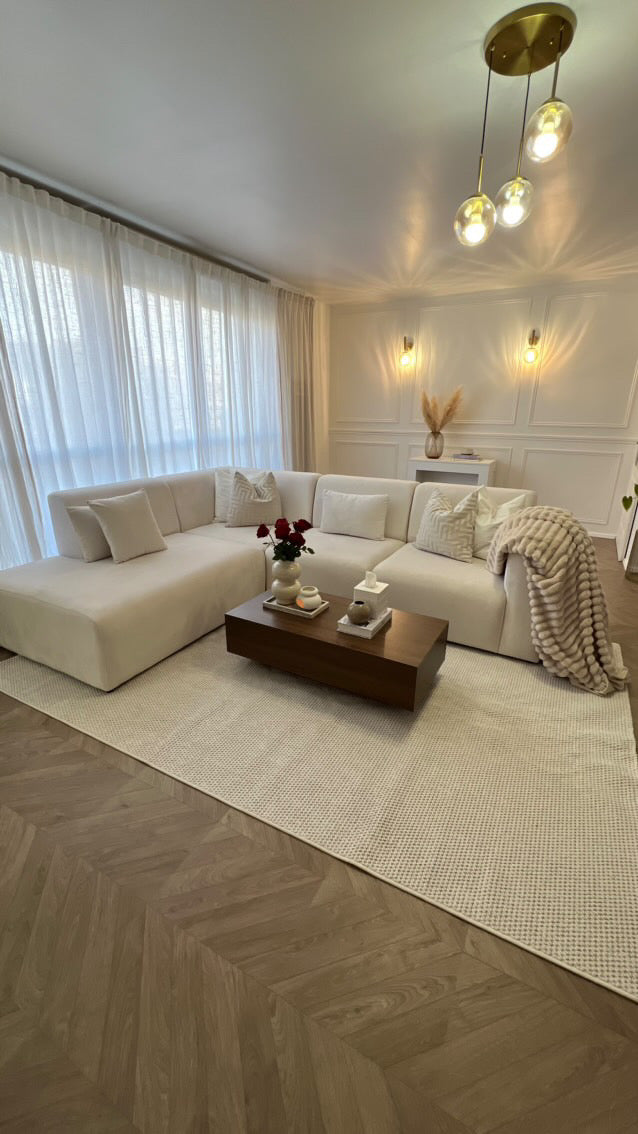 Style bouclé moderne : Son tissage texturé crée du relief et du caractère tout en apportant douceur et convivialité.